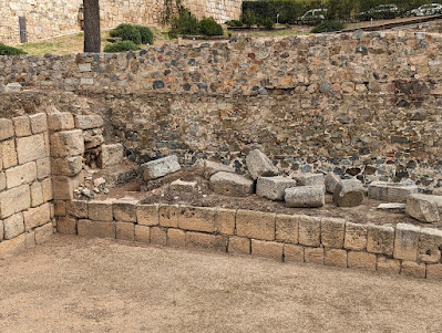 We spent yesterday exploring around the city of Merida (originally the Roman regional capital of Emerita). Although most of the buildings in the city are relatively modern, it is built on top of what were major Roman and Moorish cities. Emerita was an important capital in the Roman empire over 2000 years ago. Scattered throughout the city are exposed excavations of ruins: baths, houses and other structures.